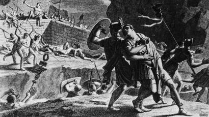 Правообладатель иллюстрацииGETTYImage captionИногда к самоубийству прибегают от позора и отчаяния: на рисунке римский генерал кончает с собой, проиграв битву германцам